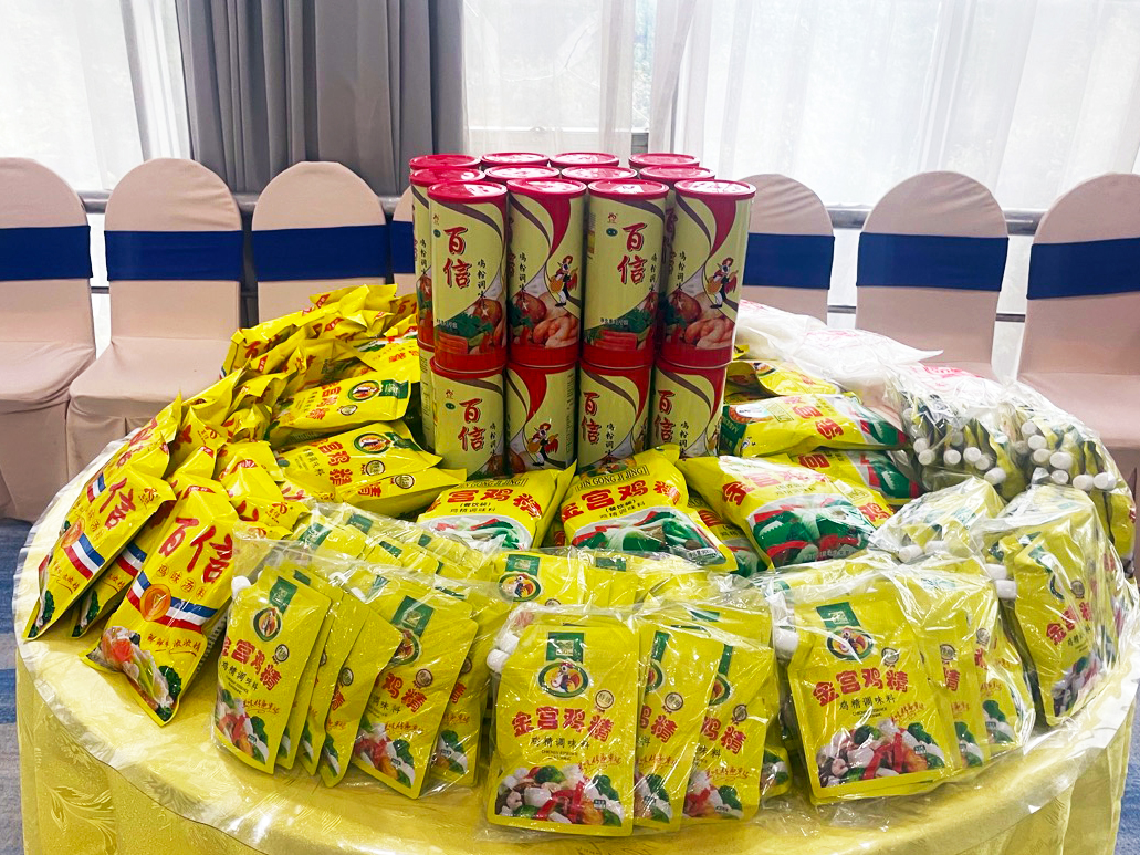 活動現(xiàn)場設(shè)有產(chǎn)品展示與推介專區(qū),金宮熱銷產(chǎn)品“特級雞精454克”強勢登場,香味濃郁、提鮮持久,深受在場客戶青睞。同時,金宮還帶來了多款新品,包括“新香辣系列調(diào)味料”“濃縮牛油火鍋底料”“青花椒嫩魚底料”等,讓客戶在試吃中充分感受金宮在產(chǎn)品創(chuàng)新方面的持續(xù)突破與品質(zhì)堅守。