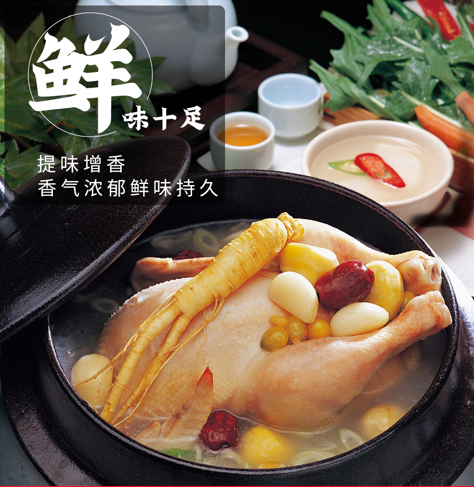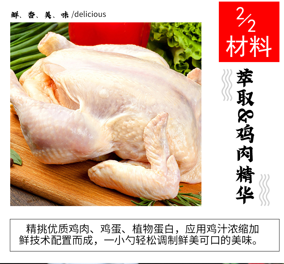 產(chǎn)品簡(jiǎn)介:本品采用濃縮雞骨、雞蛋精制而成,內(nèi)含豐富的氨基酸和蛋白質(zhì),具有雞汁特鮮、持久耐煮的特點(diǎn),在菜肴、火鍋、湯類、點(diǎn)心及食品加工可獲得鮮美滋味。