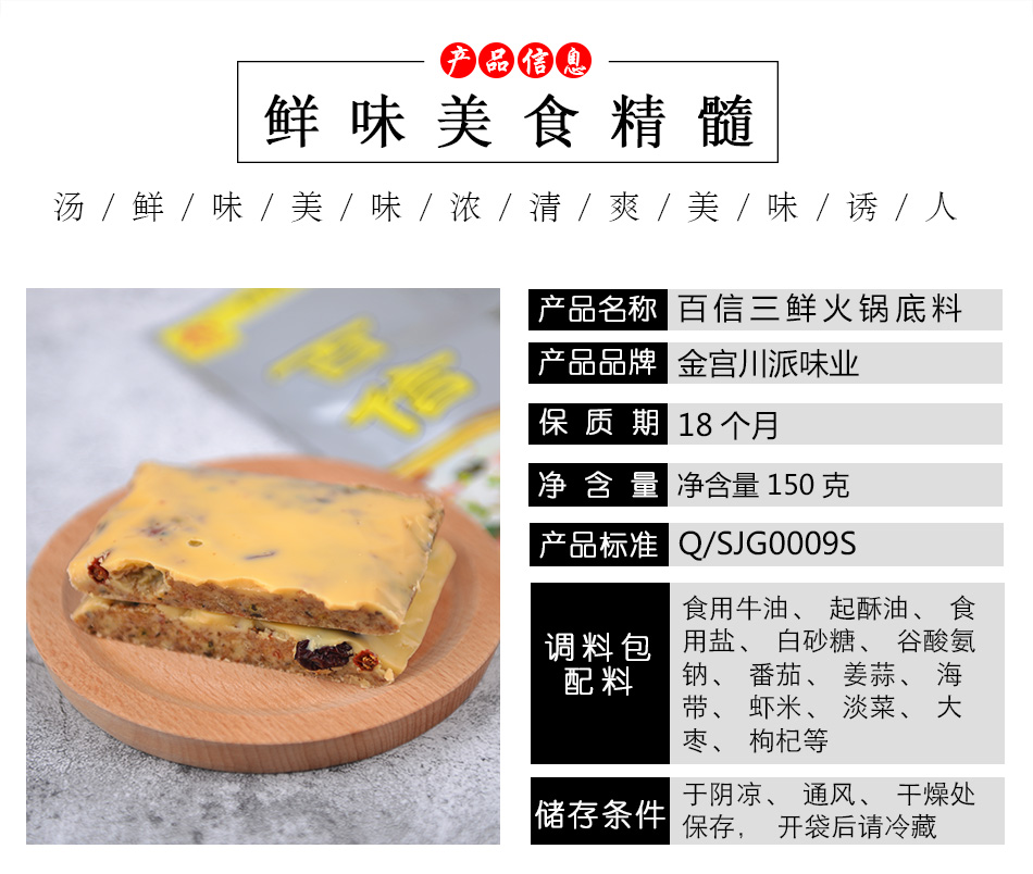百信三鮮火鍋底料-百信品牌-四川金宮川派味業(yè)有限公司_金宮,金宮雞精,金宮味精,金宮火鍋底料,金宮香腸臘肉調(diào)料,金宮小龍蝦調(diào)料,金宮魚調(diào)料,金宮調(diào)料定制,金宮調(diào)味品定制-四川金宮川派味業(yè)有限公司_金宮,金宮雞精,金宮味精,金宮火鍋底料,金宮香腸臘肉調(diào)料,金宮小龍蝦調(diào)料,金宮魚調(diào)料,金宮調(diào)料定制,金宮調(diào)味品定制